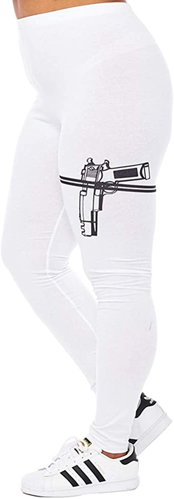 Great for working out at the gym. You'll love the way these leggings fit your every shape. These stretchy leggings feature an elasticized waistband and large gun symbols embroidered on the sides of each leg.