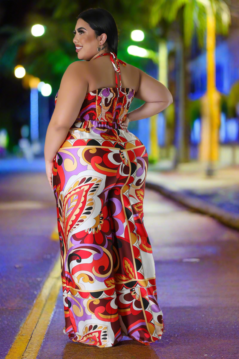 Unleash your inner diva with this two piece set! The crop top features a flattering halter neckline and self tie closure, while the high waisted pants elongate your legs with their wide, non-stretch satin material. Complete with convenient zipper closures on both pieces for easy wear.
