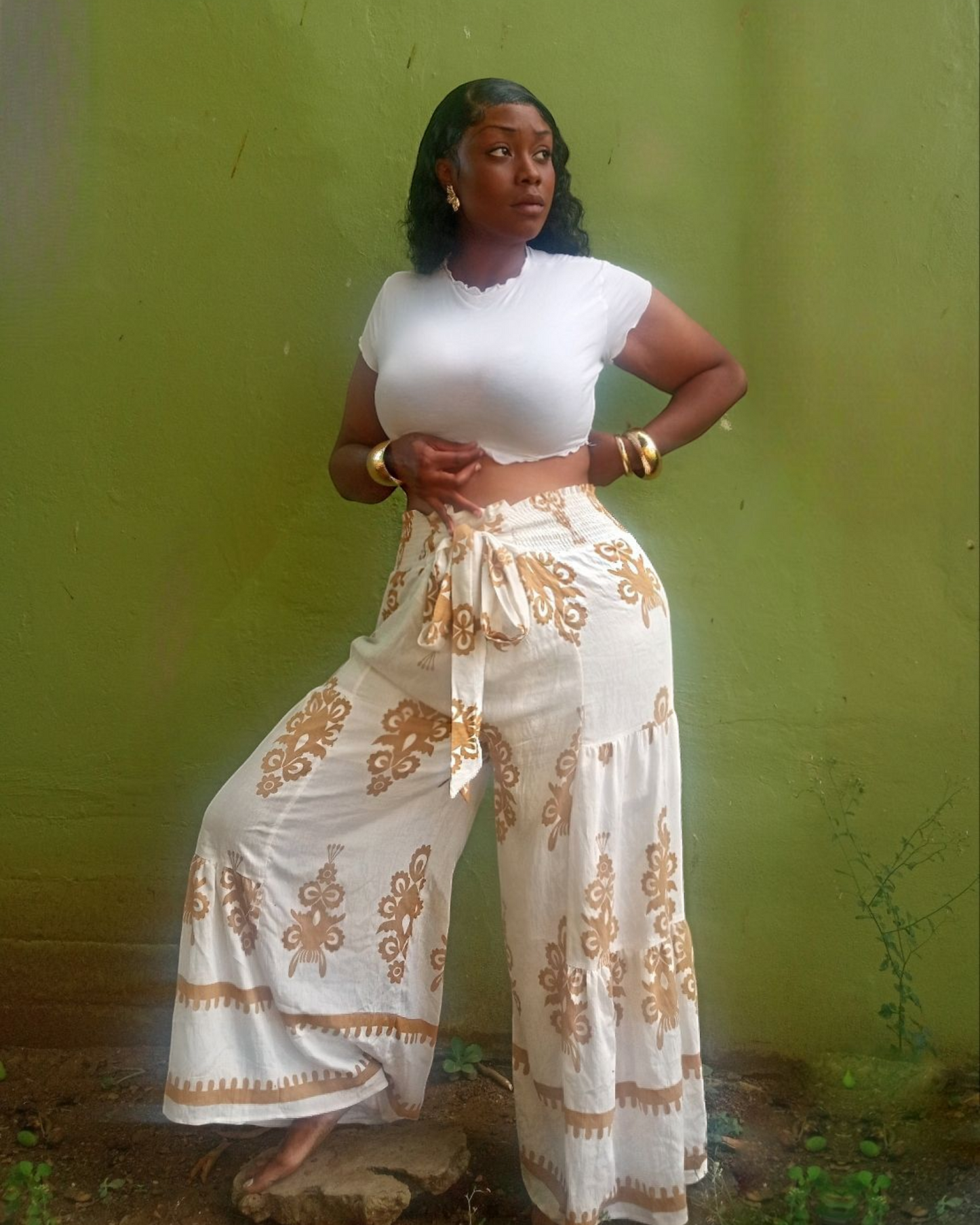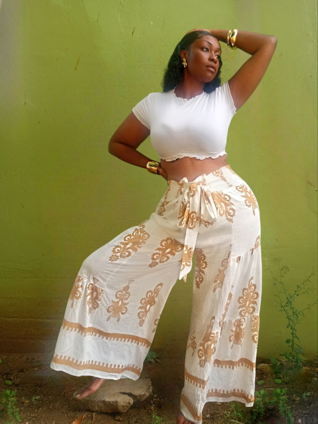 Command the scene with Soft Authority. These luxe wide-leg pants flow with every step and pair perfectly with sandals or wedges for a regal island look.